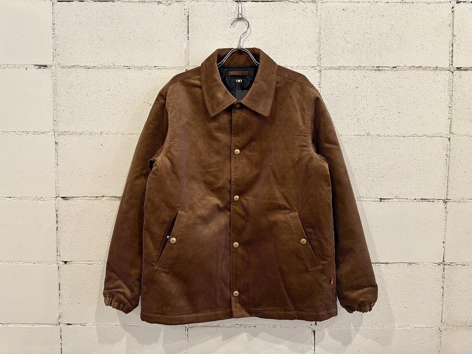 太畝コーデュロイ生地を使用したシンプルデザインなコーチジャケット。裏地はキルティングを使用しているので保温性も高いです。