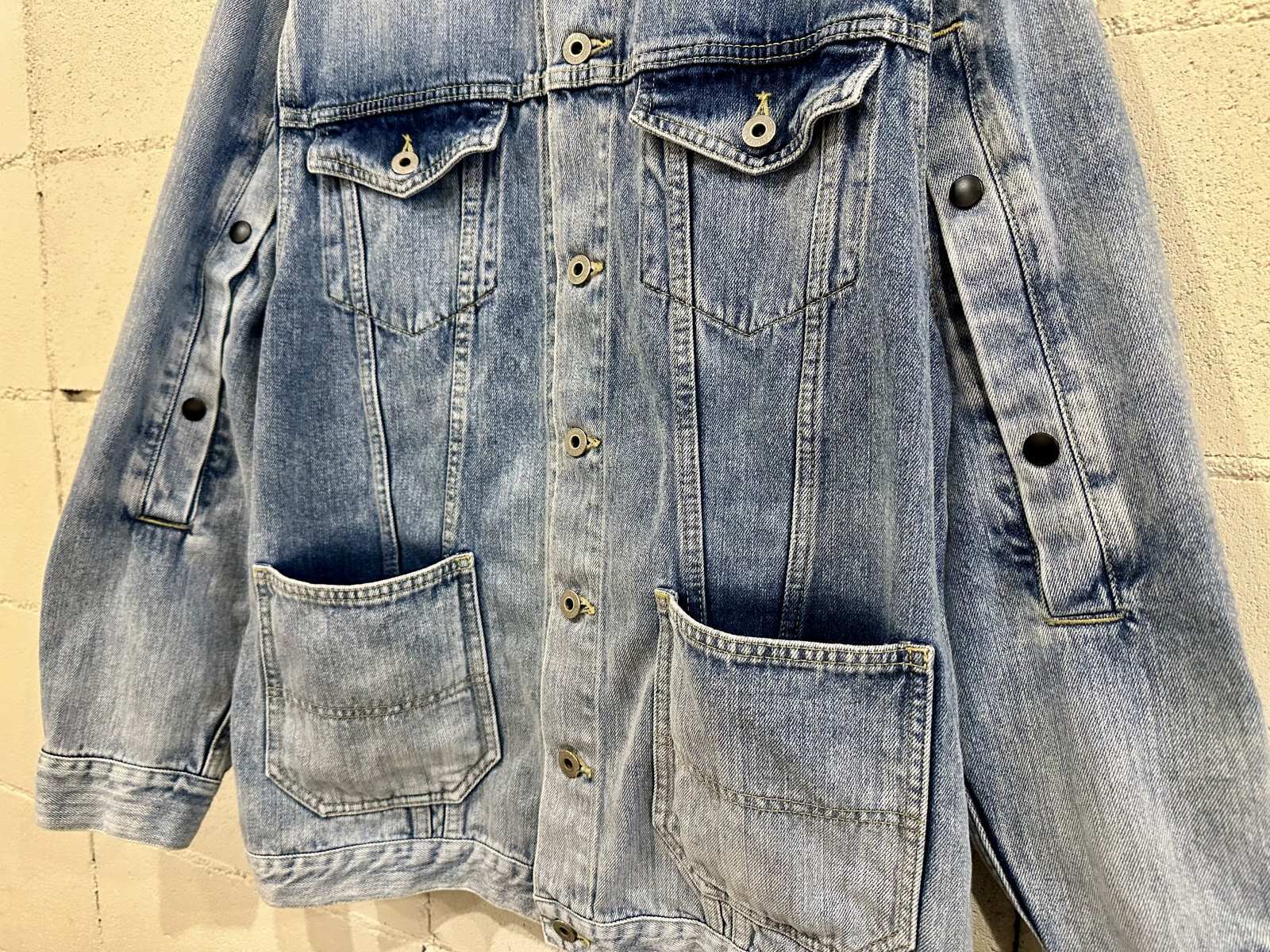 3rdタイプとカバーオールがミックスされたFDMTLらしいデザインのデニムジャケット。3年間着古したようなリアルなアタリや色落ちも施されたヴィンテージ加工。袖にはスナップボタンが付いておりベンチレーション機能も有ります。