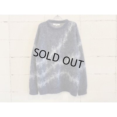 絞り染め柄をジャガード織で表現したモヘア混のセーターです。