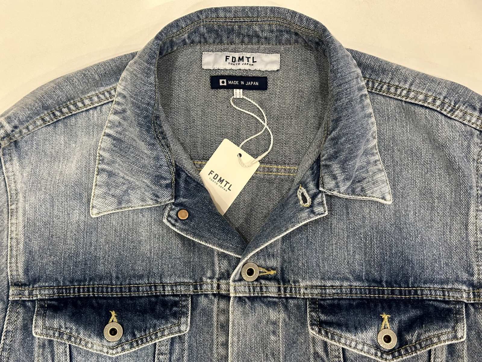3rdタイプとカバーオールがミックスされたFDMTLらしいデザインのデニムジャケット。3年間着古したようなリアルなアタリや色落ちも施されたヴィンテージ加工。袖にはスナップボタンが付いておりベンチレーション機能も有ります。